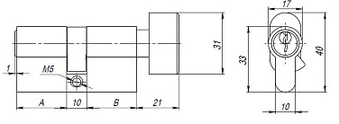 Цилиндровый механизм Ajax (AX102/70) AX1002Knob70 (30+10+30) PB латунь с вертушкой