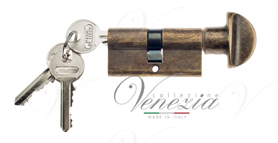 Цилиндровый механизм ключ-вертушка Venezia 25/10/25 античная бронза