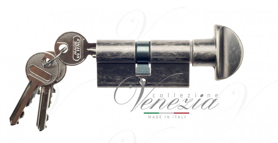 Цилиндровый механизм ключ-вертушка Venezia 25/10/25 античное серебро