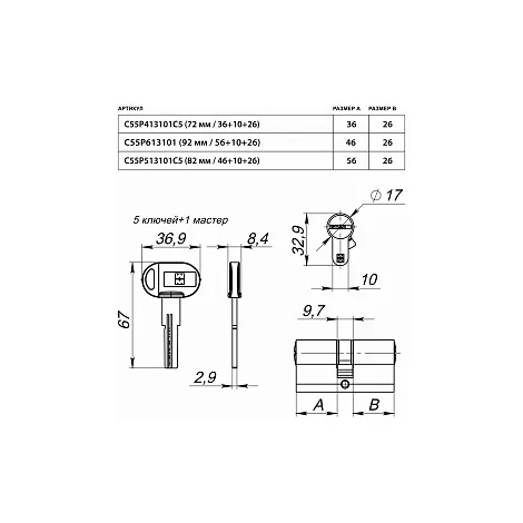 Цилиндровый механизм под вертушку с длинным штоком C55P413101C5 серии CHAMPIONS C55 имеет две системы кодировки: традиционная система вертикальных пинов и система из трех поворотных пинов с двойной десмодромной дорожкой, математическим пином, и новым интерактивным элементом, который увеличивает уровень безопасности и обеспечивает обновление патента еще на 20 лет. Особая система управления свободно вращающимися пинами, ложные пазы на пинах, большое количество комбинаций делают практически невозможным вскрытие цилиндра. Корпус и ротор защищены от сверления (штифты, пины, заглушки повышенной твердости). Пины и контрпины из закаленной стали имеют специальную форму защиты от отмычек. Боковые пины контроля профиля блокируют цилиндр в случае вскрытия отмычками или бампингом. Ключи с цилиндрами поставляются с зарегистрированной карточкой владельца. Изготовление дубликатов ключей возможно только при предъявлении карты владельца. Размер цилиндра: 72 мм (36+10+26). Цвет: матовый никель. Гарантия: 1 год.