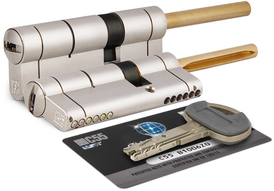 Цилиндровый механизм под вертушку с длинным штоком C55P513101C5 серии CHAMPIONS C55 имеет две системы кодировки: традиционная система вертикальных пинов и система из трех поворотных пинов с двойной десмодромной дорожкой, математическим пином, и новым интерактивным элементом, который увеличивает уровень безопасности и обеспечивает обновление патента еще на 20 лет. Особая система управления свободно вращающимися пинами, ложные пазы на пинах, большое количество комбинаций делают практически невозможным вскрытие цилиндра. Корпус и ротор защищены от сверления (штифты, пины, заглушки повышенной твердости). Пины и контрпины из закаленной стали имеют специальную форму защиты от отмычек. Боковые пины контроля профиля блокируют цилиндр в случае вскрытия отмычками или бампингом. Ключи с цилиндрами поставляются с зарегистрированной карточкой владельца. Изготовление дубликатов ключей возможно только при предъявлении карты владельца. Размер цилиндра: 82 мм (46+10+26). Цвет: матовый никель. Гарантия: 1 год.