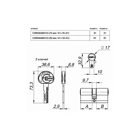 - Тип цилиндраКлюч-ключ