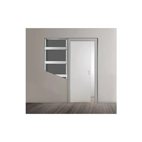 Пенал Rolapp UNICO для одностворчатой раздвижной двери высотой 2100 мм из дерева, стекла и алюминия с необходимостью установки обрамления проема. Гарантия: 1 год.