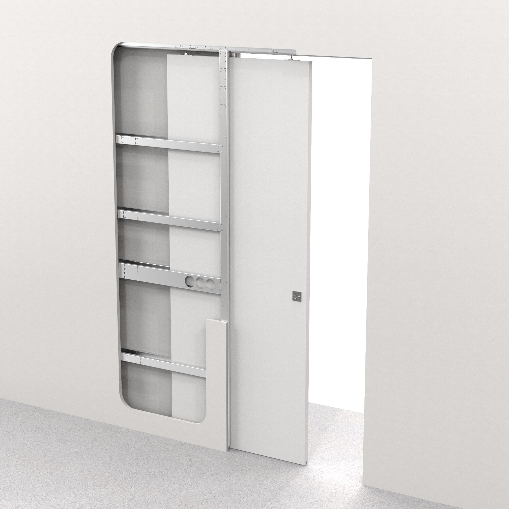 Направляющий трек входит в комплект пенала. Для варианта с наличниками необходимо приобрести дополнительно комплект кареток Comfort-PRO (SET 1 /rollers/ 80, SET 3 /soft close+roller/ 80 или SET 2 /soft close/ 80) и нижнюю направляющую Comfort R 60/80/1000. Для варианта с обрамлением (без наличников) необходимо приобрести дополнительно профиль обрамления ID 57911 или 57913 в зависимости от цвета, комплект кареток Comfort-PRO (SET 1 /rollers/ 80, SET 3 /soft close+roller/ 80 или SET 2 /soft close/ 80) и нижнюю направляющую Comfort R 60/80/1000. Универсальный пенал подходит для полотен шириной 600, 700, 800, 900 мм и высотой 2000, 2100, 2200, 2300 мм. Один артикул охватывает 16 вариантов размеров. Каркас подрезается на месте при монтаже по специальным насечкам на деталях. Для увеличения высоты пенала на 100 мм необходимо приобрести удлинитель SLD.Comfort-PENAL extension 100, ID 61199.