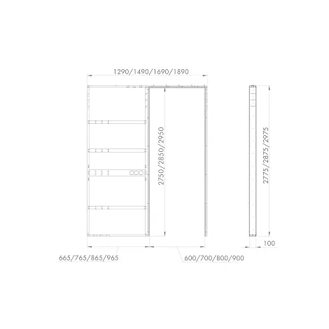 Направляющий трек входит в комплект пенала. Для варианта с наличниками необходимо приобрести дополнительно комплект кареток Comfort-PRO (SET 1 /rollers/ 80, SET 3 /soft close+roller/ 80 или SET 2 /soft close/ 80) и нижнюю направляющую Comfort R 60/80/1000. Для варианта с обрамлением (без наличников) необходимо приобрести дополнительно профиль обрамления в зависимости от цвета, комплект кареток Comfort-PRO (SET 1 /rollers/ 80, SET 3 /soft close+roller/ 80 или SET 2 /soft close/ 80) и нижнюю направляющую Comfort R 60/80/1000. Универсальный пенал подходит для полотен шириной 600, 700, 800, 900 мм и высотой 2700, 2800, 2900 мм. Один артикул охватывает 12 вариантов размеров. Каркас подрезается на месте при монтаже по специальным насечкам на деталях.