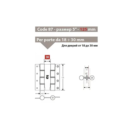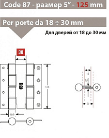 Дверная петля барная пружинная двусторонняя Fratelli Cattini (Aldeghi) CODE 87 155-30. Данная модель подходит для дверей до 30 мм толщиной. Гарантия: 1 год.