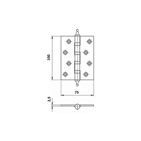 Петля универсальная Palladium N 500 A-4 100x75x2.5 мм., из латуни. Универсальная врезная петля 100 мм (4") неразъемной конструкции. Предназначена для межкомнатных и входных деревянных дверей и может быть врезана с любой стороны дверного полотна. Главное преимущество: карточная петля N 500 A-4" отлита из латуни премиум-качества (Class A). Если сравнивать со стальными, латунные петли точнее, стабильнее в размерах, имеют меньший люфт, не ржавеют и дольше держат покрытие. 4 подшипника качения на оси. Многослойное гальваническое покрытие. Два слоя лака для защиты покрытия от износа и влаги. Смазка уже нанесена и не нуждается в обновлении. Гарантия: 1 год.