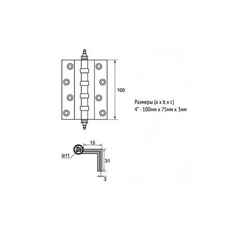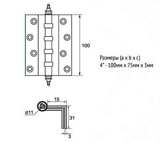Петля дверная универсальная Palladium N 401-4\" AB античная бронза