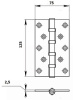 Петля универсальная Palladium N 500 C-5 125x75x2.5 мм., из латуни. Универсальная врезная петля 125 мм (5") неразъемной конструкции. Предназначена для межкомнатных и входных деревянных дверей и может быть врезана с любой стороны дверного полотна. Главное преимущество: карточная петля N 500 C-5" отлита из латуни премиум-качества (Class A). Если сравнивать со стальными, латунные петли точнее, стабильнее в размерах, имеют меньший люфт, не ржавеют и дольше держат покрытие. 4 подшипника качения на оси. Многослойное гальваническое покрытие. Два слоя лака для защиты покрытия от износа и влаги. Смазка уже нанесена и не нуждается в обновлении. Гарантия: 1 год.