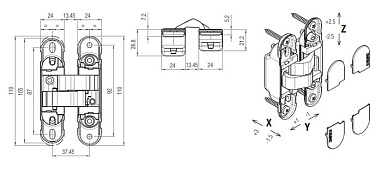 Скрытая петля универсальная Kubica HYBRID K1019-40 кг от итальянской фабрики Koblenz. Петля выполнена из высокопрочной стали, подходит для дверей со скрытым дверным коробом и дверной коробки из дерева, стали, алюминия. Нагрузка до 52 кг c 2-мя петлями, угол открывания до 180*, минимальная толщина двери 32 мм. Износостойкие втулки в шарнире, нет необходимости в смазке/обслуживании, универсальные для правого и левого открывания. Регулируется в 3-х плоскостях, все регулировки независимые. Гарантия: 1 год.