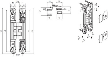 Скрытая петля универсальная Kubica HYBRID K2460-60 кг асимметричная от итальянской фабрики Koblenz. Петля выполнена из высокопрочной стали и сплава Zamak, подходит для дверей со скрытым дверным коробом и дверной коробки из дерева, стали, алюминия. Нагрузка до 60 кг c 2-мя петлями, угол открывания до 180*, минимальная толщина двери 25 мм. Износостойкие втулки в шарнире, нет необходимости в смазке/обслуживании, универсальные для правого и левого открывания. Регулируется в 3-х плоскостях, все регулировки независимые. Регулировки: горизонтальная +/-3 мм, вертикальная +/-3 мм, в плоскости +/-1,5 мм. Гарантия: 1 год.