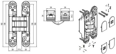 Петля скрытая универсальная KUBICA K8080 ATOMIKA KARAKTER DXSX, CL полированный хром (100 kg)