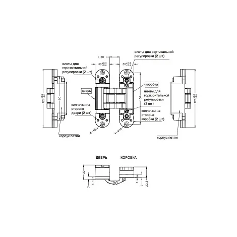 Скрытые петли ELEMENTIS 120x30 мм, 50 кг. Гарантия: 1 год.