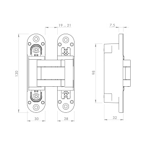 Скрытые петли Armadillo U3D5000 подходят для установки в деревянные двери, двери-невидимки, двери с алюминиевой кромкой. U3D5000 - универсальные петли для дверей с левым и правым открыванием. Петли скрытой установки U3D5000 предназначены для установки в межкомнатные двери толщиной от 38 мм. Рассчитаны на нагрузку до 60 кг при установке двух петель. Невидимы на закрытой двери и обеспечивают угол открывания до 180 градусов. Бесшумны и плавны в работе за счёт нейлоновых вставок на подвижной части конструкции. Легко регулируются в трех плоскостях уже после завершения монтажа. Регулируются в трех плоскостях: по горизонтали ±1 мм, высоте ±2,5 мм и притвору -1,5\+2 мм. Декоративные накладки входят в комплект. Соответствуют типоразмерам KUBICA K6360 и Anselmi 511/512. Гарантия: 1 год.