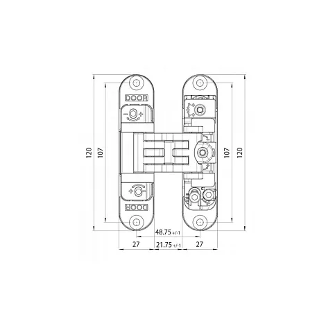 Скрытая универсальная центральная петля Kubica 2700 DXSX от итальянской фабрики Koblenz, зарекомендовала себя, как надежные и долговечные механизмы скрытого монтажа дверного полотна.Использование скрытых петель Kubica позволяет добиться стильного и изящного вида межкомнатной двери. У петли имеется 3 типа регулировок, направленных на максимально точную установку. Гарантия: 1 год.