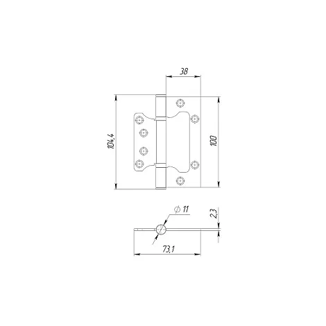 Универсальная дверная петля без врезки Ajax IN4000W SSG (100/P-2B 100x2,3) изготовлена из стали, подходит для дверей левого и правого открывания. Гальваническое покрытие прошло тест на устойчивость к коррозии в соляном тумане и соответствует 1 классу ГОСТ. В петле установлены втулка-подшипники и стальной стержень, что обеспечивает работоспособность 200 000 циклов открывания/закрывания. Максимальная нагрузка на 2 петли 30 кг, на 3 петли 40 кг. Размер петли: 100x2,3. Саморезы в цвет изделия в комплекте. Упаковка: подвес. Гарантия: 1 год.