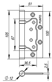 Универсальная дверная петля без врезки Punto 200-2B 100 изготовлена из стали, подходит для дверей левого и правого открывания. Гальваническое покрытие прошло тест на устойчивость к коррозии в соляном тумане и соответствует 1 классу ГОСТ. В петле установлены втулка-подшипники и стальной стержень, что обеспечивает работоспособность 200 000 циклов открывания/закрывания. Гарантия: 1 год.