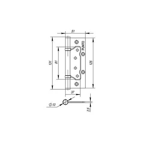 Универсальная дверная петля без врезки Punto 200-2B 125 изготовлена из стали, подходит для дверей левого и правого открывания. Гальваническое покрытие прошло тест на устойчивость к коррозии в соляном тумане и соответствует 1 классу ГОСТ. В петле установлены втулка-подшипники и стальной стержень, что обеспечивает работоспособность 200 000 циклов открывания/закрывания. Гарантия: 1 год.