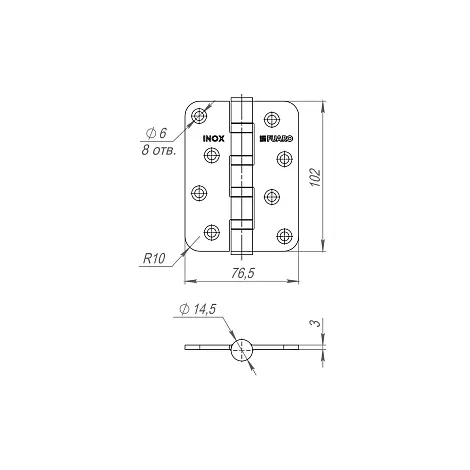 Петля универсальная Fuaro IN4400U-R10 INOX (4BB-R10 102х76х3)