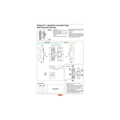Скрытая петля AGB E30200.03 серии ECLIPSE 2.2 предназначена для дверей без наплава, подходит для телескопических наличников. Невидимы снаружи, изысканны в дизайне двери. Подходят для правых и левых дверей. Легкая установка: элементы петли на створке и коробке могут быть предустановлены прямо на производстве и собраны на месте. Регулировка прижима ±1 мм, регулировка по высоте ±2 мм, регулировка по горизонтали ±1,5 мм. Декоративные накладки петель скрывают регулировочные винты и в открытом состоянии, идут в комплекте. Гарантия: 1 год.