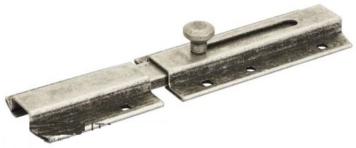 261FA15 Задвижка дверная усиленная, плоский ригель ALDEGHI 150мм античное серебро