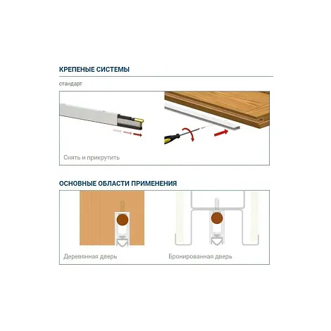 Итальянская фирма Comaglio производит автоматические пороги, которые призваны защитить комнату от сквозняков, пыли, насекомых и шума. Дверная фурнитура компании производится в соответствии требованиями высокого качества, надежности и долговечности.