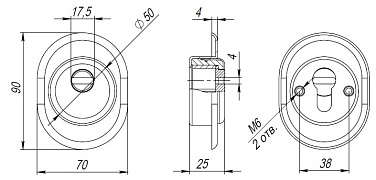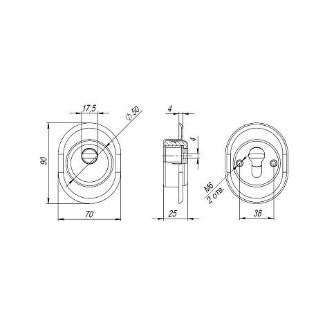 Броненакладка врезная с чашкой DEF.CRE/OV-set.9726 (DEF 9726) M6x90 врезная с чашкой CP-8 хром