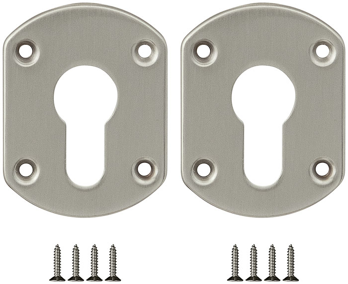 Комплект декоративных накладок Fuaro ESC031 под цилиндровый механизм. Комплект состоит из двух накладок. Накладки предназначены для установки на цилиндровый механизм для декорирования замочной скважины. Материал изготовления: сталь. Тип крепления накладок: сквозной. Саморезы в цвет накладок. Гарантия: 1 год.