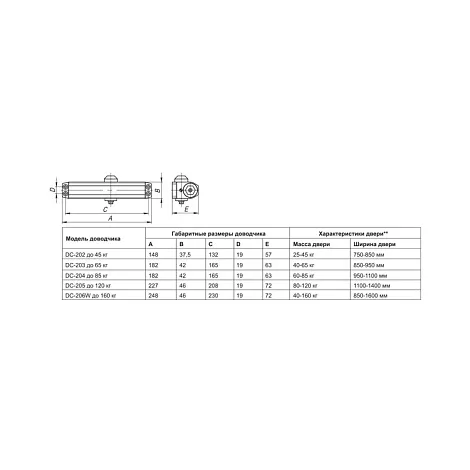 Доводчик дверной DC20-5 (DC-205) BL до 120 кг (черный)