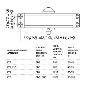 Доводчик дверной морозостойкий Armadillo LY3 предназначен для установки на все стандартные двери массой от 40 до 65 кг, шириной до 962 мм. Подходит для левых и правых дверей. Температурный режим работы от -40 до +45 °С. В комплектацию входит: дверной доводчик, рычаг, декоративная заглушка, комплект крепежа, инструкция, шаблон монтажа. Гарантия: 1 год.