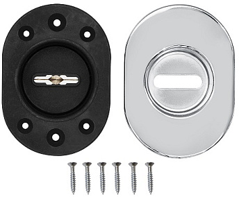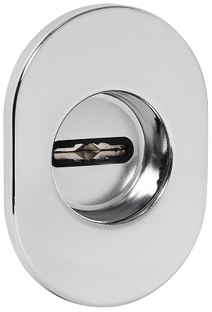 Дверная декоративная накладка-"чашка" ESC 477 U RLR вогнутая под сувальдный ключ с автоматическими шторками предназначена для установки на сувальдные замки для декорирования замочной скважины. Разработана в составе комплекта RED LINE ROUND - RLR, в который входят ручка, поворотник, накладки на сувальду, цилиндр, шток и броненакладки в едином дизайне. Может устанавливаться на двери с декоративными панелями повышенной толщины, а также просто на утолщённые двери. Подпружиненные шторки автоматически расходятся при контакте с ключом и сходятся при вынимании ключа из скважины.