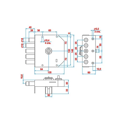 - Глубина замка135 мм