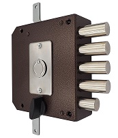 Замок накладной сувальдный ЗН4 032.1.1 имеет 4 класс безопасности. Предназначен для установки во входные двери всех типов - как металлические, так и деревянные. Замок рекомендуется для установки на гаражные двери. Крепится с внутренней стороны двери, поэтому не ослабляет дверное полотно. Может быть установлен собственными силами, без привлечения специалистов. Замок запирает дверь четырьмя стальными ригелями и задвижкой. В одном из ригелей расположен закаленный стальной стержень, обеспечивающий надежную защиту от перепиливания. При помощи данного замка дверь запирается на четыре полных оборота (возможно неполное запирание двери на два оборота), а также дополнительно изнутри - на задвижку. Модель снабжена вертикальными тягами, обеспечивающими дополнительное запирание двери в направлении вверх-вниз. Гарантия: 1 год.