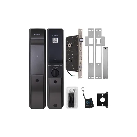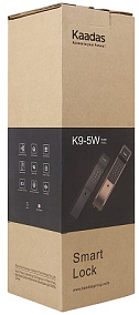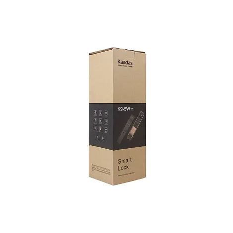 Kaadas K9-5W электронный врезной замок с механизмом "пуш-пул", такая конструкция позволяет открыть дверь одним нажатием на ручку замка. Корпус замка выполнен из металла черного цвета. Врезная часть имеет три ригеля. Замок оснащен встроенным биометрическим сканером отпечатка пальца. Открывается паролем - 10 шт., запоминает до 100 RF-карт и отпечатков пальцев, есть аварийный механический ключ. В замке есть функция голосового сообщения на английском языке. Главное отличие от модели К9-5 это наличие Wi-Fi и возможностью управления замком из любой точки мира. Рекомендуемая толщина двери 28-120 мм. Габаритные размеры: внешняя часть - 400 x 80 x 30 мм, внутренняя часть -460 x 80 x 32 мм. Гарантия: 1 год.