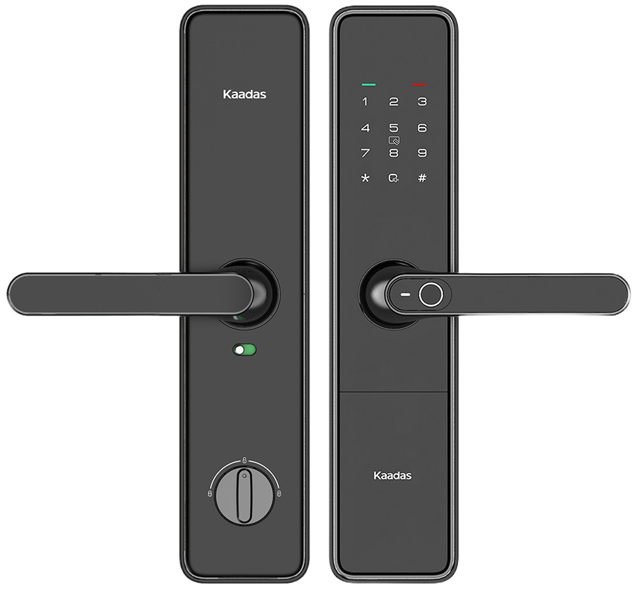 Kaadas S500-5W c Wifi - электронный замок с ручкой врезного типа с полуавтоматической системой запирания. Оснащен встроенным биометрическим сканером отпечатка пальца, расположенным прямо на ручке. Открывается 10 паролями, запоминает до 100 отпечатков пальцев и 100 RF-карт, есть аварийный механический ключ. Рекомендуемая толщина двери 38-120 мм. Русскоязычный голосовой помощник. Гарантия: 1 год.