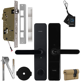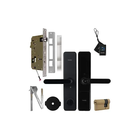 Замок врезной электронный к с ручкой Kaadas S500-5W с отпечатком пальца, черный