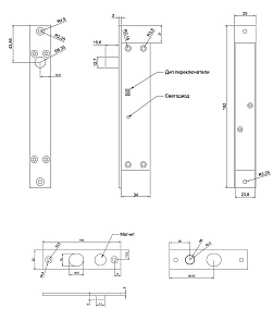 Врезной соленоидный электромеханический замок-защёлка со встроенным датчиком состояния двери предназначен для установки в вертикальном или горизонтальном положении. Оснащен светодиодным индикатором. Тип замка - NO. Укомплектован двухпозиционными DIP-переключателями, задающими время автоматического запирания: 0, 3, 6, 9 с. Механизм замка - соленоидный. Наработка на отказ - 5 млн циклов. Питание - DC 12 В, потребляемый ток в режиме ожидания - 0.15 А, в рабочем режиме - 1.35 А. Материал - нержавеющая сталь. Диапазон рабочих температур - 10 °С… + 25 °С. Габаритные размеры 192х25х37мм. Гарантия: 1 год
