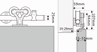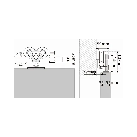 Комплект роликов для раздвижных дверей с верхним треком PR2 матовый хром