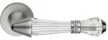 Дверная ручка на круглом основании Linea Cali LUCE mesh 1446/023 CS хром матовый/хрусталь SWAROVSKI