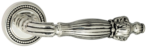 Дверная ручка на круглом основании Venezia \"OLIMPO\" D3 натуральное серебро + черный