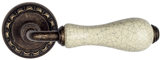 Дверная ручка на круглом основании Venezia \"COLOSSEO\" белая керамика паутинка D2 античная бронза
