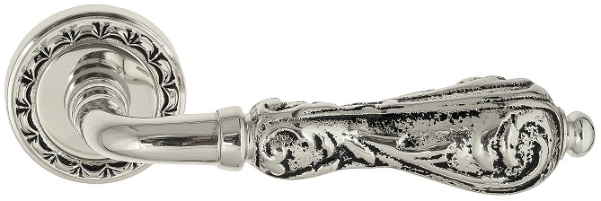 Дверная ручка на круглом основании Venezia \"MONTE CRISTO\" D2 натуральное серебро + черный