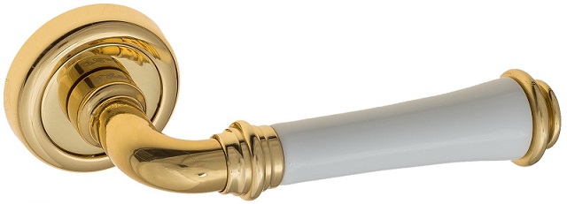 Дверная ручка на круглом основании Fratelli Cattini \"GRACIA CERAMICA BIANCO\" D1-OLV полированная латунь