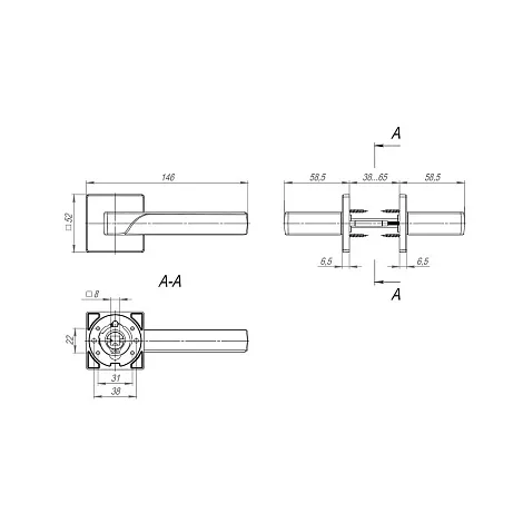 Подходят для установки на двери 38 - 65 мм. В состав комплекта входят: стяжной винт М3*30 (2 шт), стяжная втулка М3*35 (2 шт), стяжной винт М3*12 (2 шт), квадрат 8*105, саморезы 2.8*16 (8 шт), ключ шестигранный 3 мм, ключ шестигранный 2 мм, винт под внутр. шестигранник М4*5 (2 шт), винт под внутр. шестигранник М6*8 (2 шт). Гарантия: 1 год.