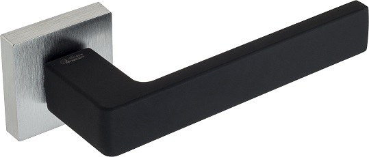 Дверная ручка на квадратном основании Venezia Unique \"BIBLO\" матовый хром/черный (мягкое покрытие)
