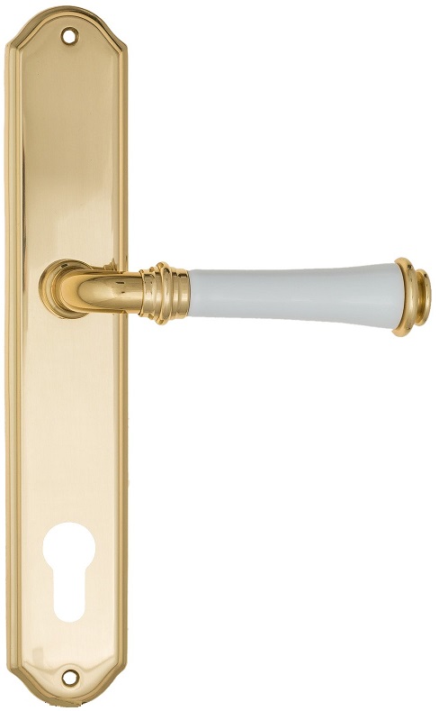 Дверная ручка на планке Fratelli Cattini \"GRACIA CERAMICA BIANCO\" CYL PL02-OLV полированная латунь