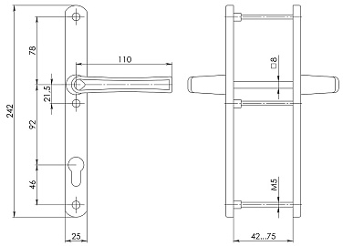 Ручка на планке с межосевым расстоянием 92 мм, используется для дверей с замками с ригелем и фалевой защелкой. Благодаря применению в соединяемых деталях вставки из полипропилена обеспечивается легкость вращения ручки и исключается износ металлических деталей. Материал: ZAMAK. Гарантия: 1 год.