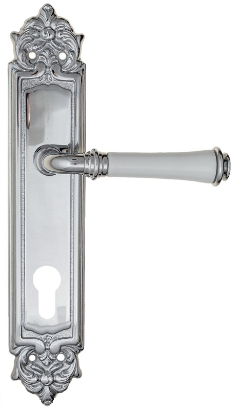Дверная ручка на планке Fratelli Cattini \"GRACIA CERAMICA BIANCO\" CYL PL96-CR полированный хром