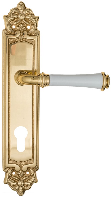 Дверная ручка на планке Fratelli Cattini \"GRACIA CERAMICA BIANCO\" CYL PL96-OLV полированная латунь