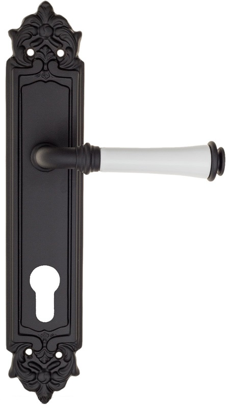 Дверная ручка на планке Fratelli Cattini \"GRACIA CERAMICA BIANCO\" CYL PL96-NM матовый черный